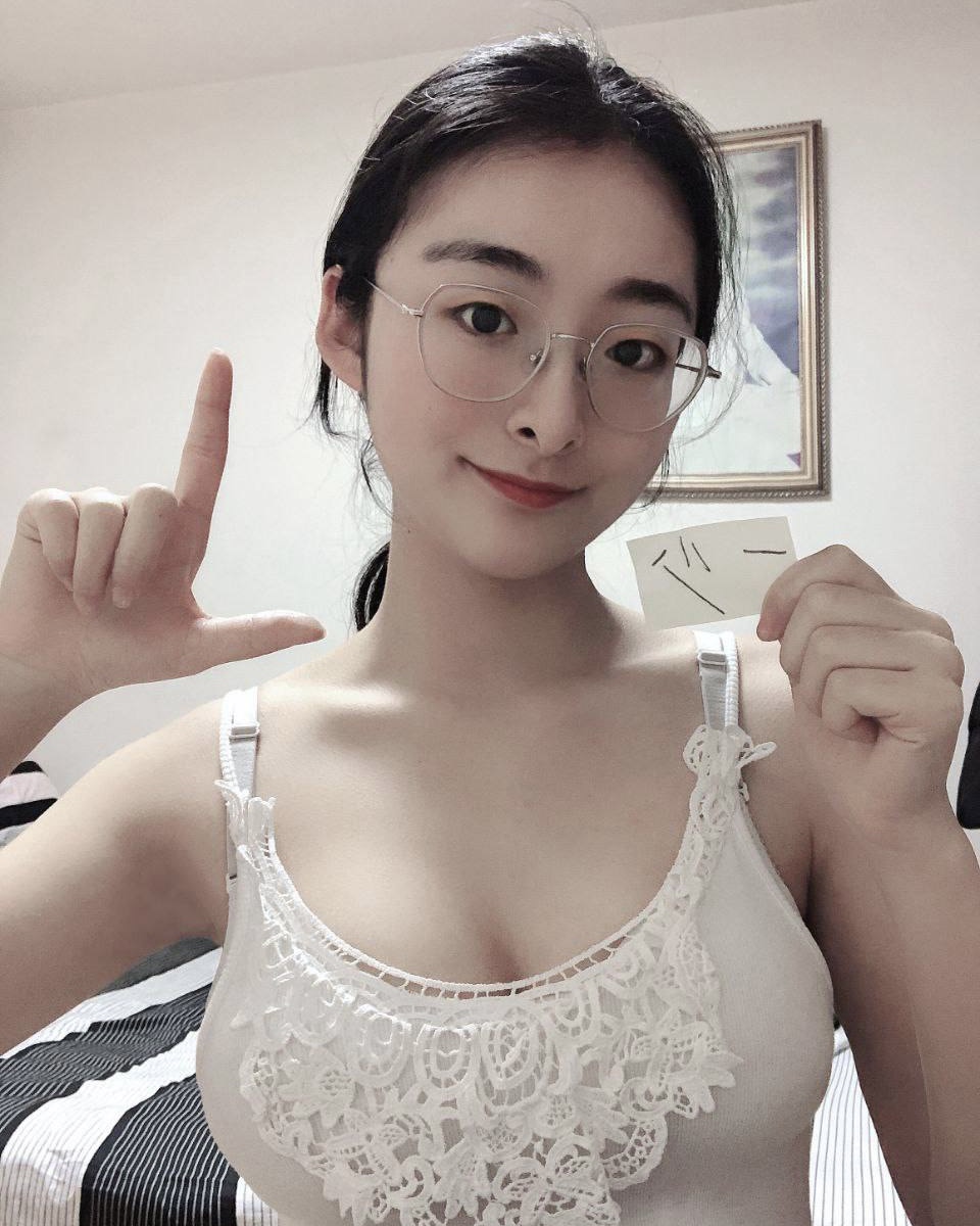 反差大二眼镜妹